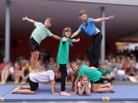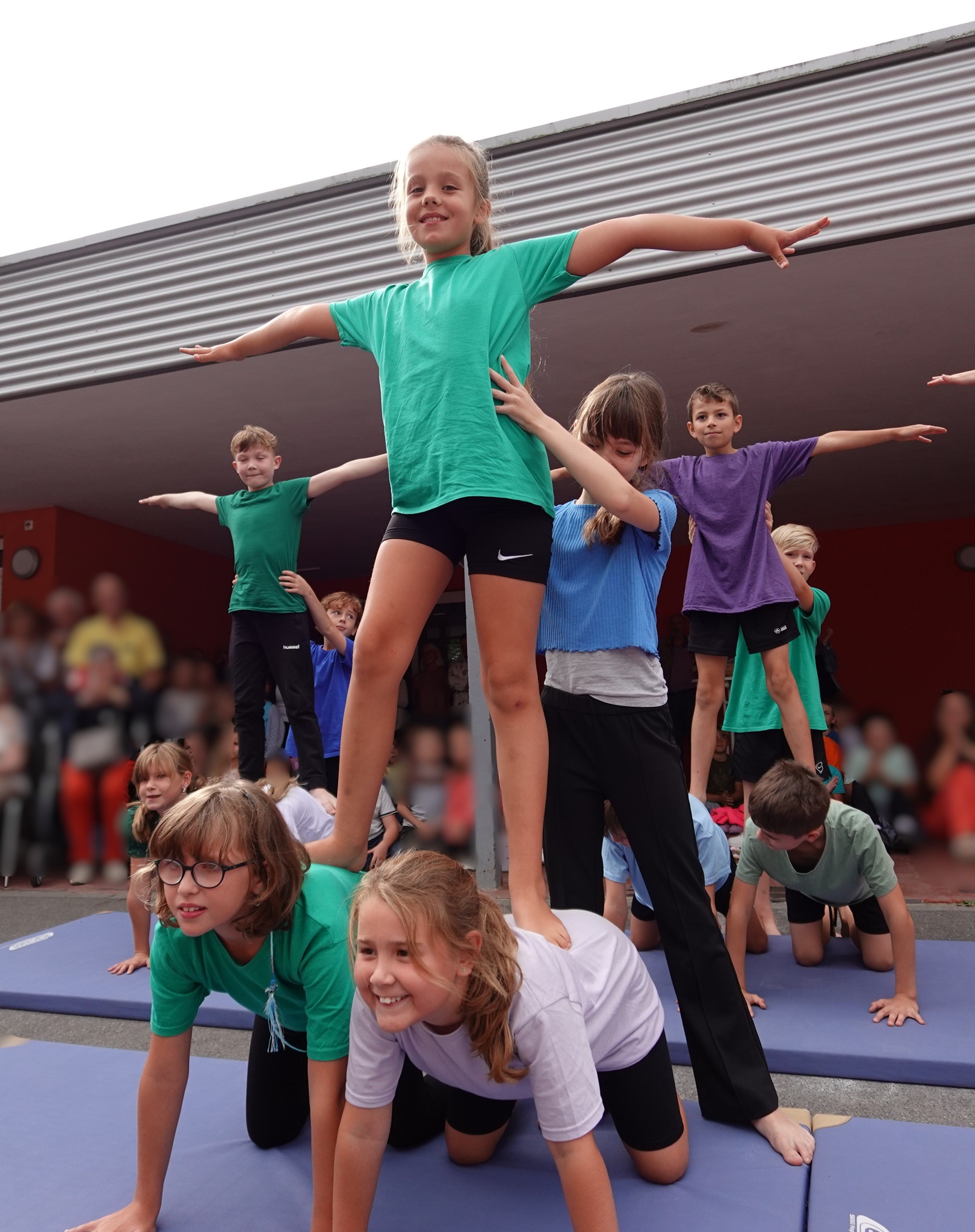 Zu fetziger Musik bestaunten wir dann die Akrobatik-Truppe, bei dem uns allen beim Zuschauen schon ganz schwindelig wurde, so hoch türmten sich die Kinder übereinander.